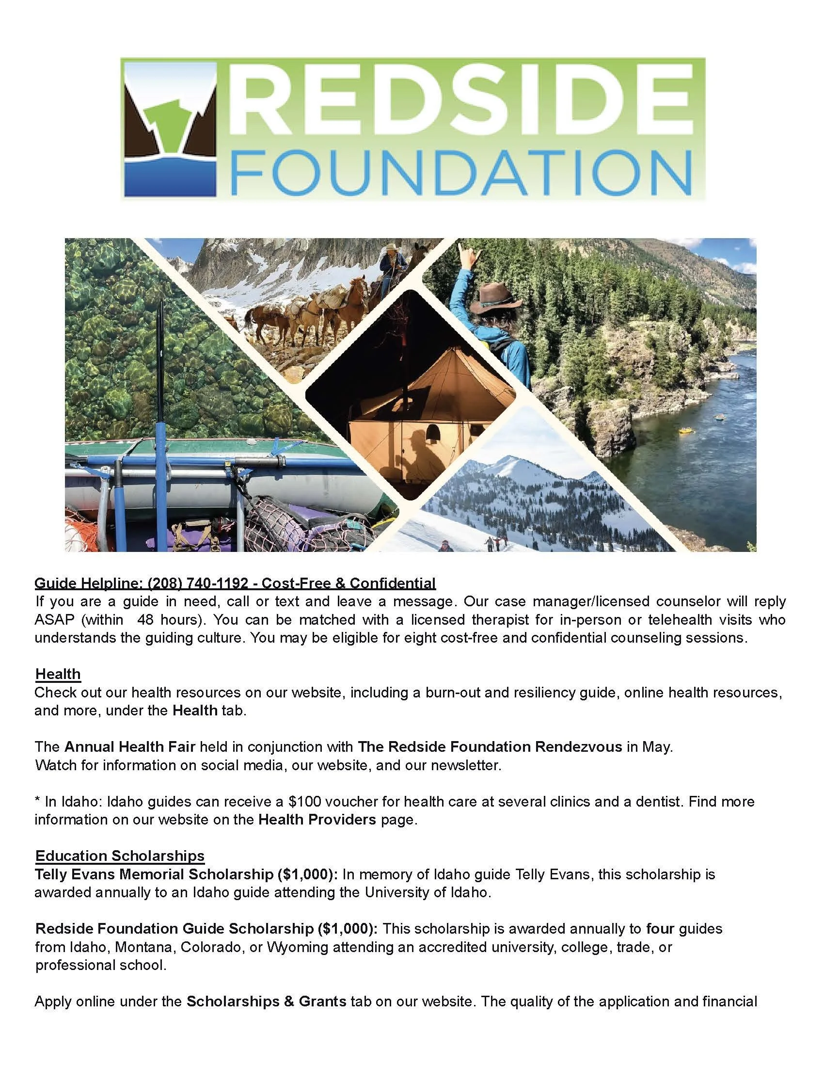 Here’s an ‘At A Glance’ explainer about Redside Foundation you can share with your guides that.
